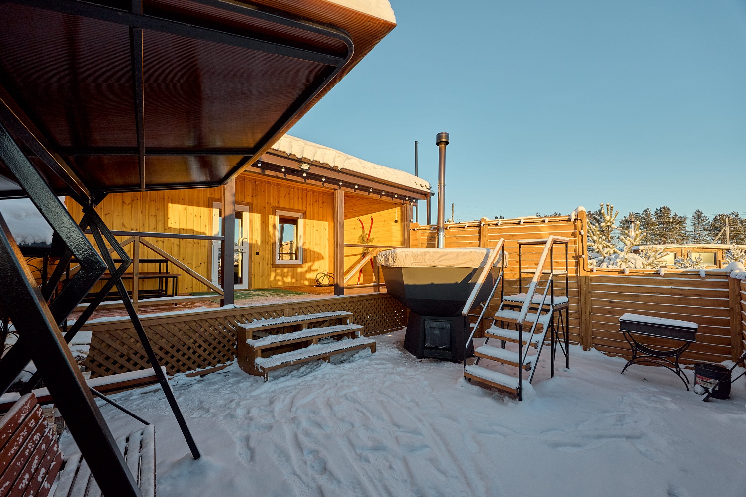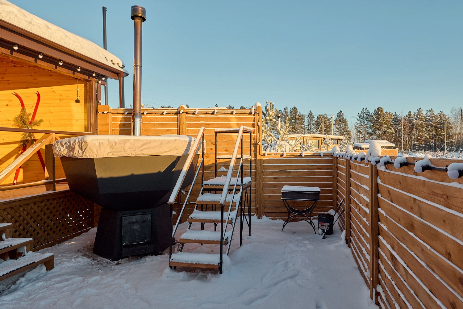 Горячий чан способствует расслаблению мышц, улучшению кровообращения и общему оздоровлению организма. Окунись в атмосферу полного релакса на Дальнем Хуторе!