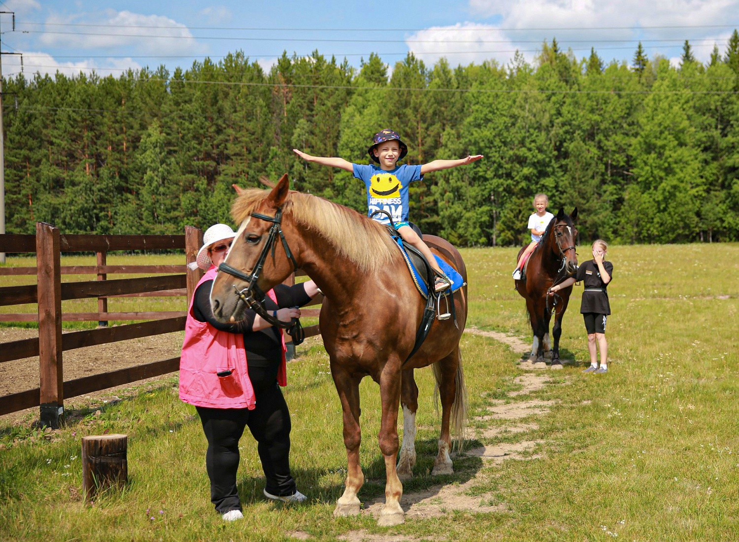 Катание проходит на спокойных и ухоженных лошадках.